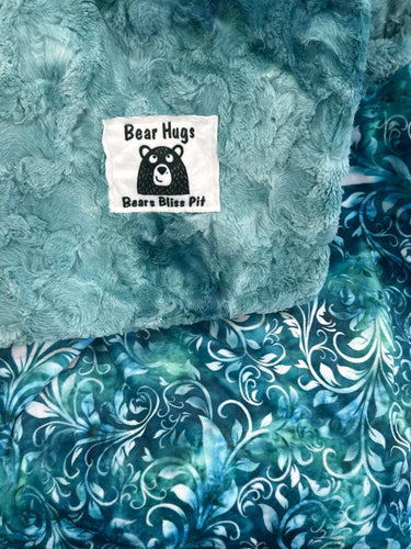 Bear Hugs are hand made blankets that feel like a giant Bear Hug. They are made from faux fur, minky, sew lush fleece and anti-pill plush fleece. They come in all sizes from baby to adult because what human doesn't want a soft and cuddly blanket!